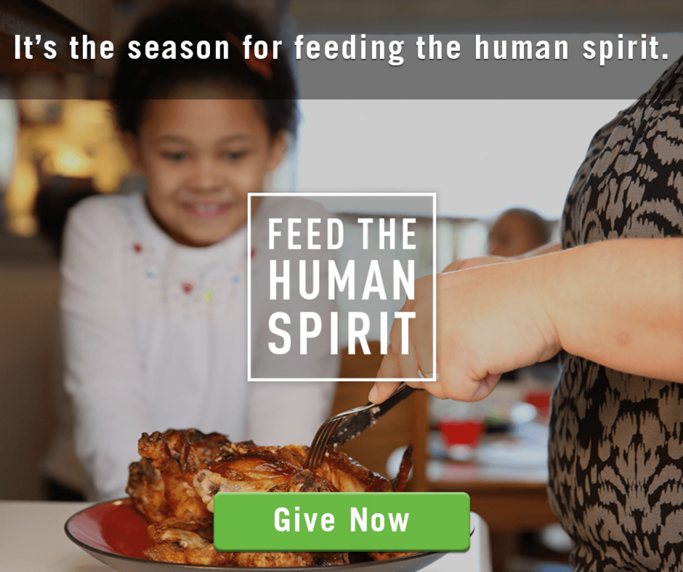 Feed the Human Spirit during this season of giving. You will help provide food today, food tomorrow and food for all.