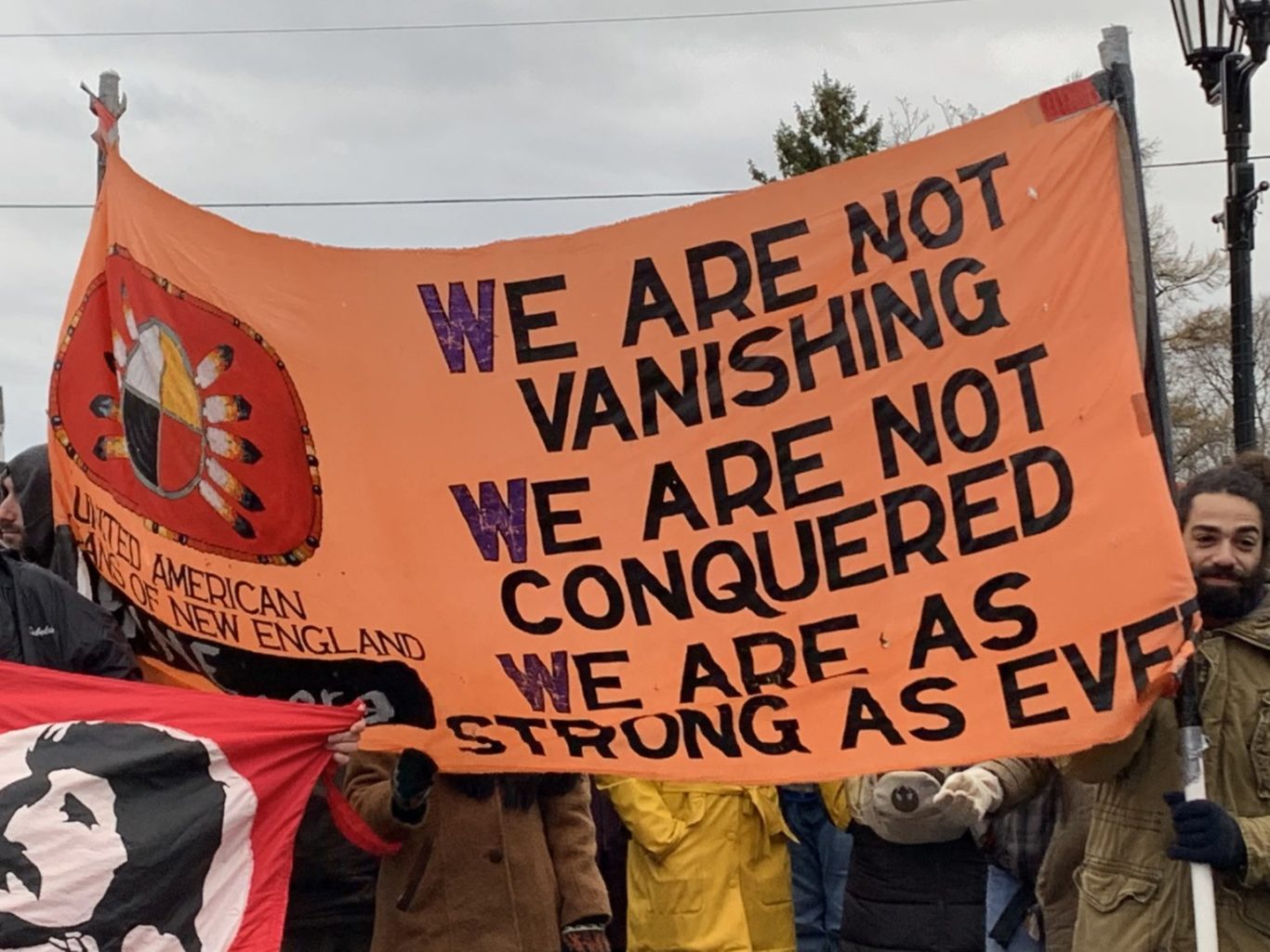 The banner of the United American Indians of New England, Nov. 28, Plymouth, Mass.